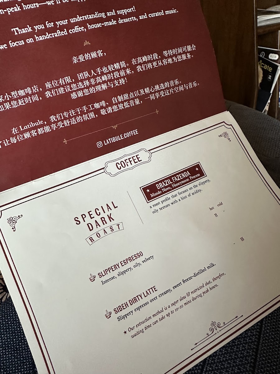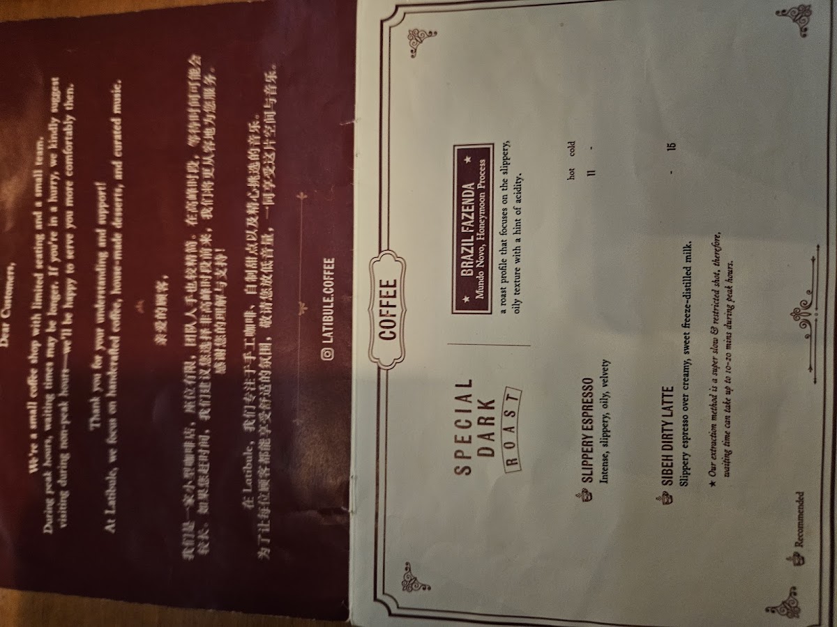 Latibule Coffee Menu