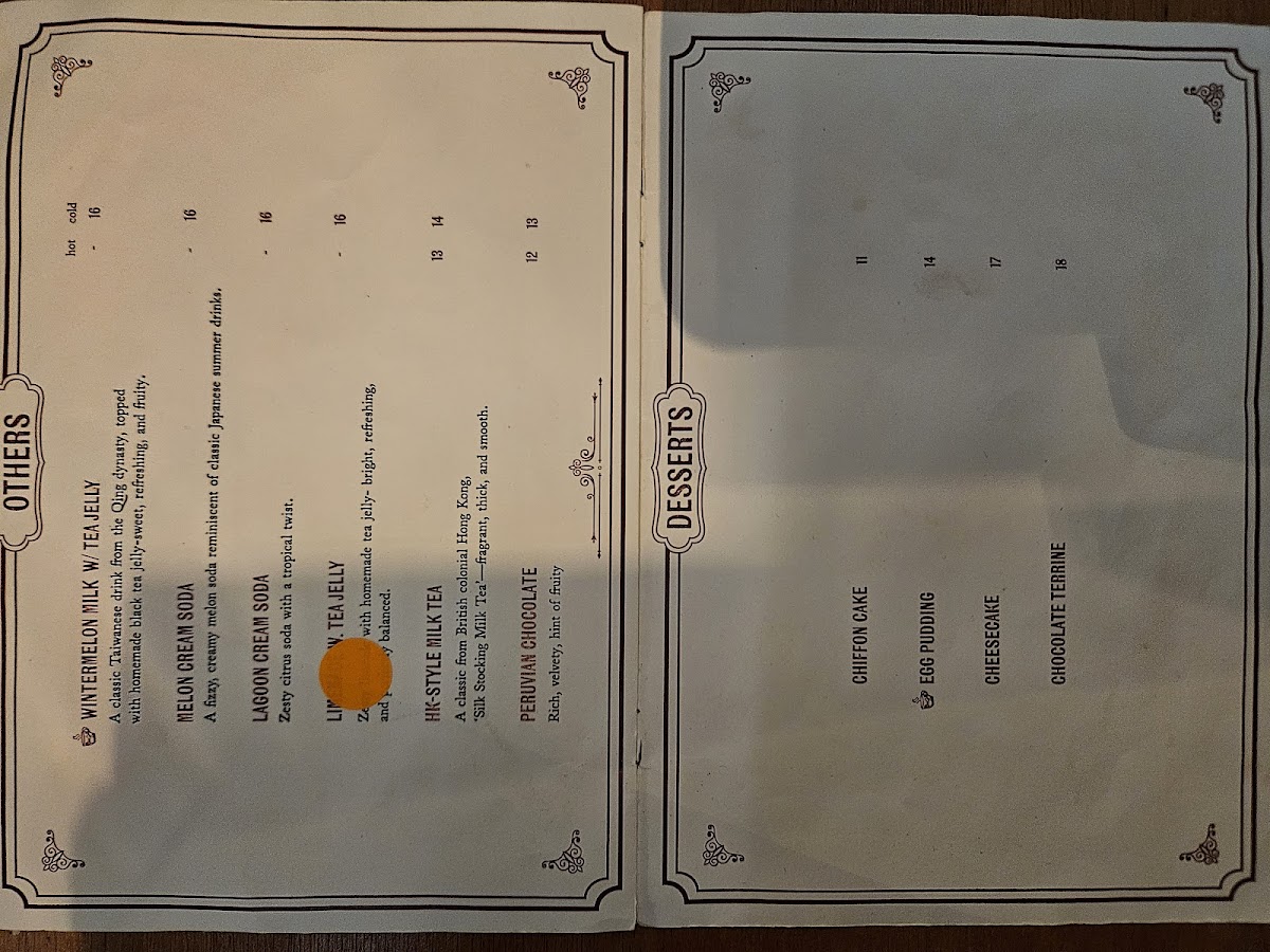 Alex Tea House Menu